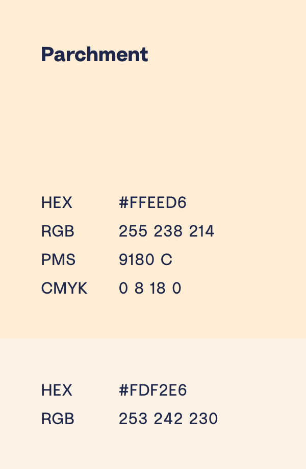 In every communication we use the primary brand colors (dark blue, purple, green and parchment).